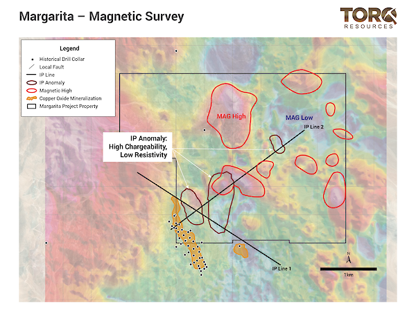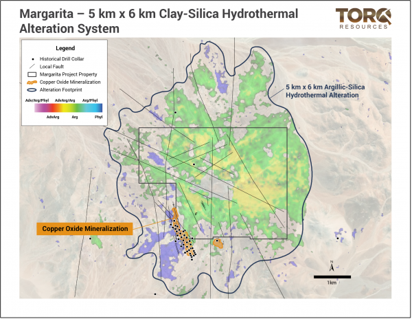 “The Margarita project represents excellent discovery potential for a major deposit due to the strength of the alteration system, large-scale magnetic targets and the presence of copper oxide mineralization along the southwest flanks of the property. With the previous exploration work that has been conducted on the project we can rapidly move to drill stage and provide a high-quality exploration opportunity in a matter of months.”