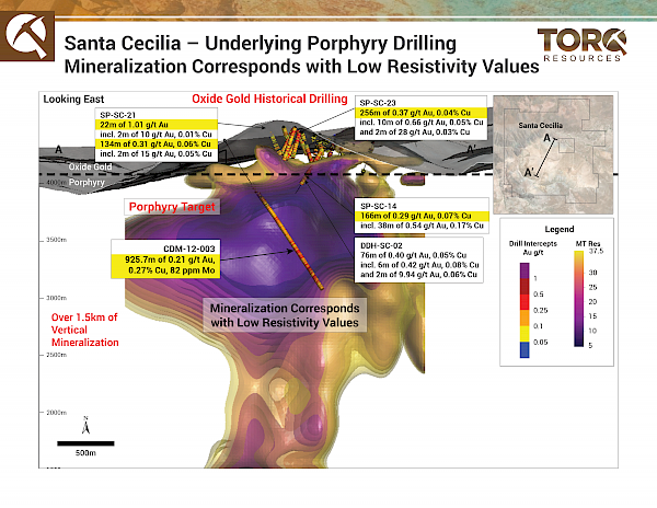 “The historical drill core that targeted the porphyry system at the Santa Cecilia project provides evidence of the incredible scale and strength of the observed mineralized system. This has given our technical team further confidence that high-grade porphyry mineralization will be present as we move forward in targeting clusters of distinct porphyry bodies across the project area.”